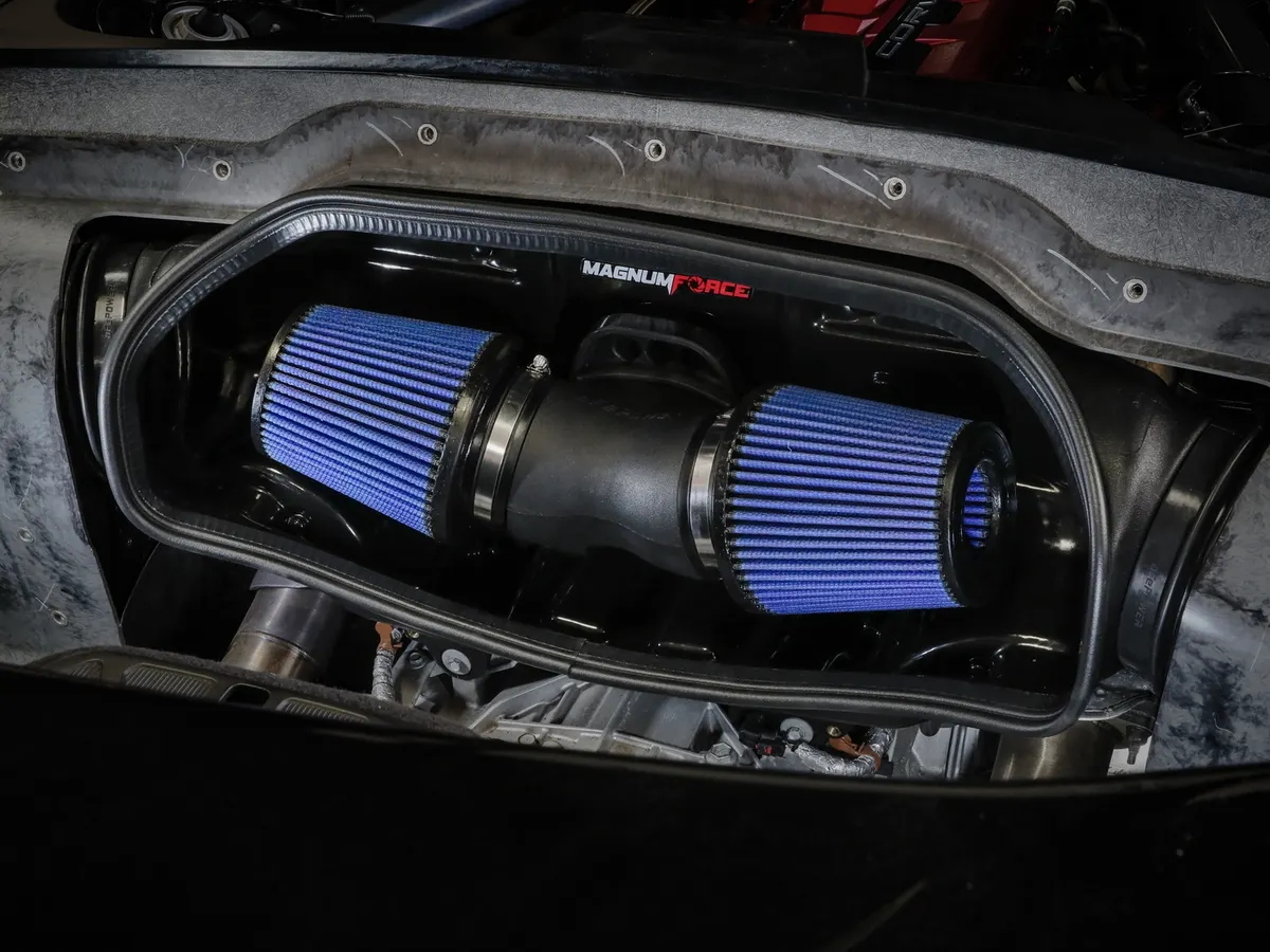 The dual air filters are surrounded by an open-element XLPE (cross-linked polyethylene) polymer housing that minimizes warm engine air for maximum performance. It is precisely designed and manufactured to fit perfectly into the factory mounting location. The housing connects to the factory air inlets on each side of the vehicle to capture the coolest air available. Silicone bellow couplings are used for engine movement and easy installation. All the factory harness and mounts are transferred to the back of the aFe POWER housing for a factory-like installation. The radio antenna plastic melded on the factory air box is also transferred to the aFe POWER housing. The removal of the antenna from the factory air box requires two plastic melted mounting tabs to be cut off.